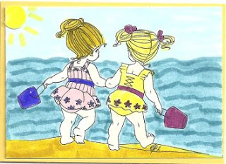 I have used Digi Bells "Little Best Friends" digi stamp, circle punch for the sun. Stamp and background Coloured with Copics, Distress markers, Tria markers and Sugarloaf markers.