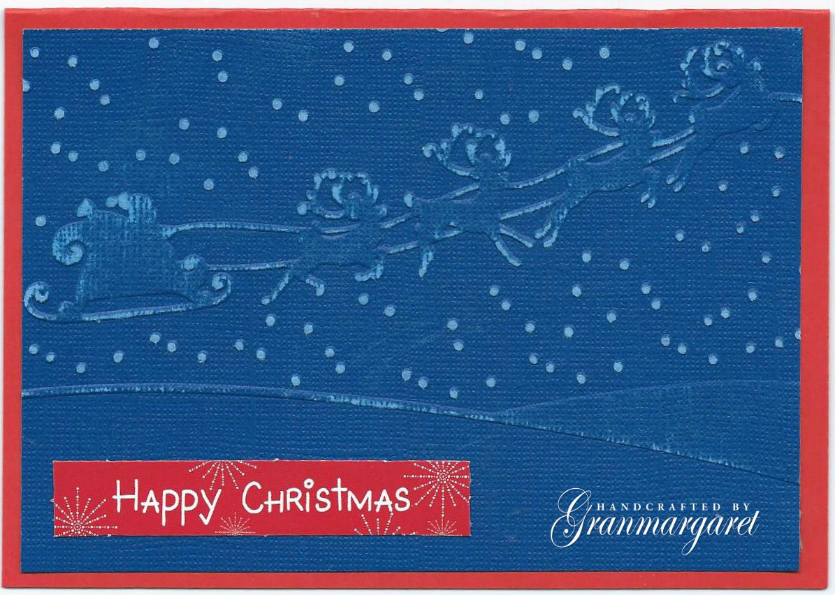 I have used Crafts Too "Sleigh" embossing folder and sentiment is from a Christmas decoupage set.