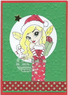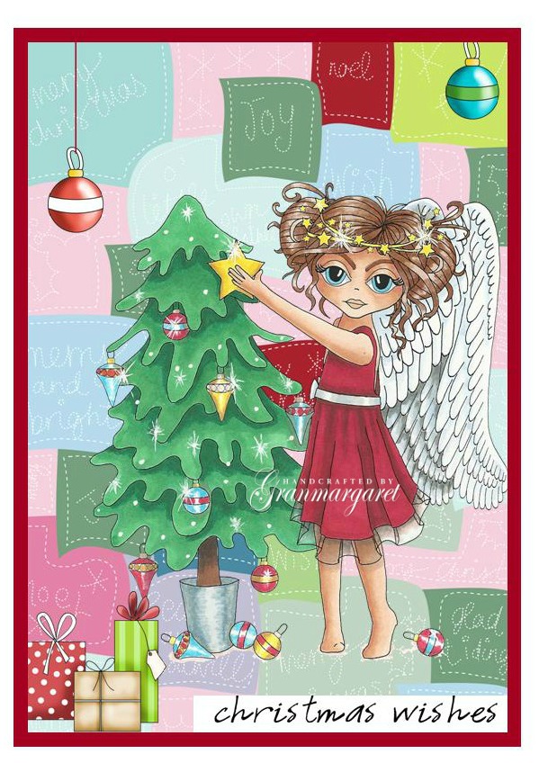 I have used pattern paper, precoloured digi stamp, elements and sentiment from Polkadoodles Angelberry Christmas CD. This is my favourite Christmas CD.