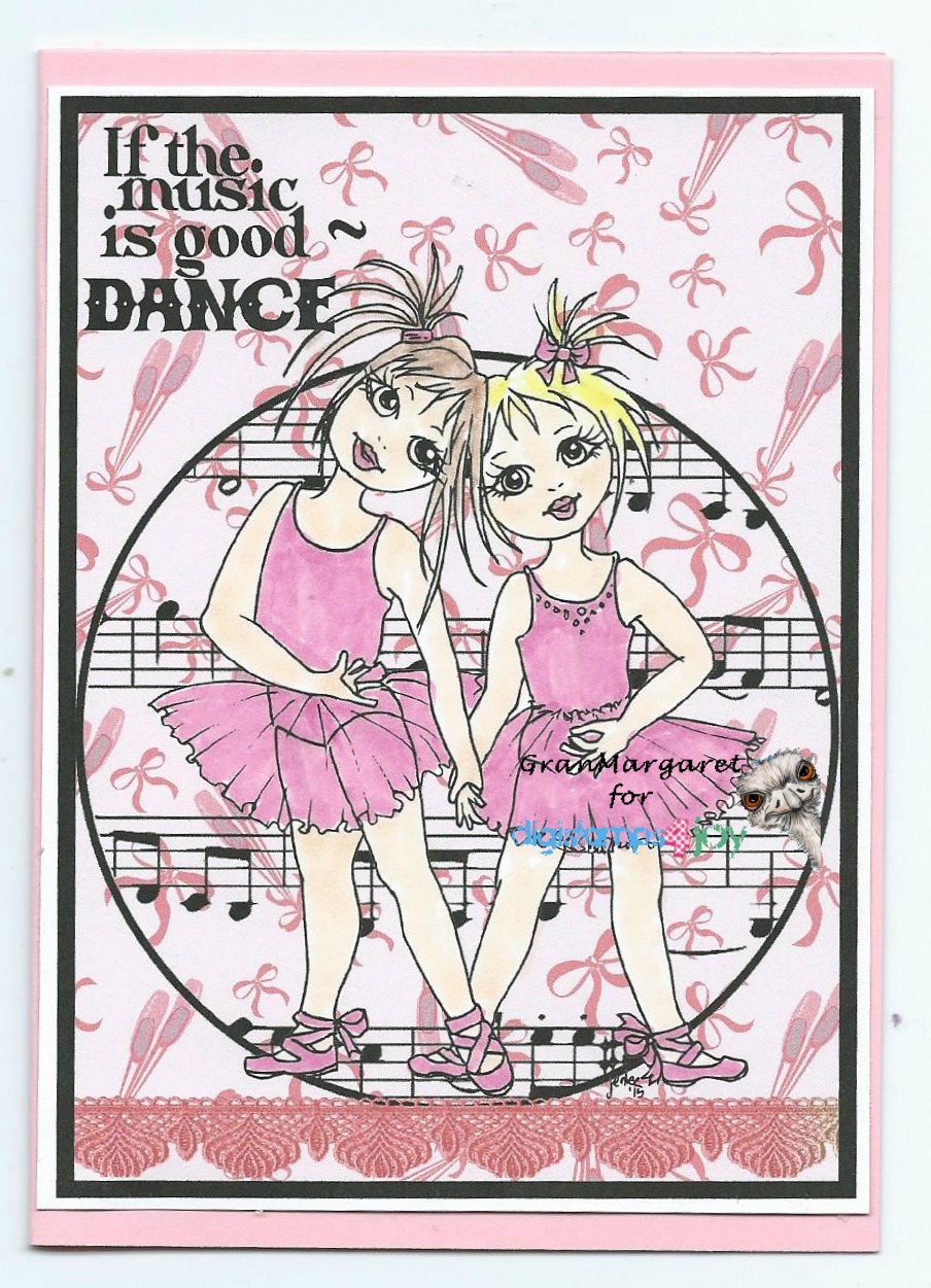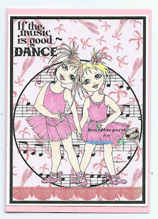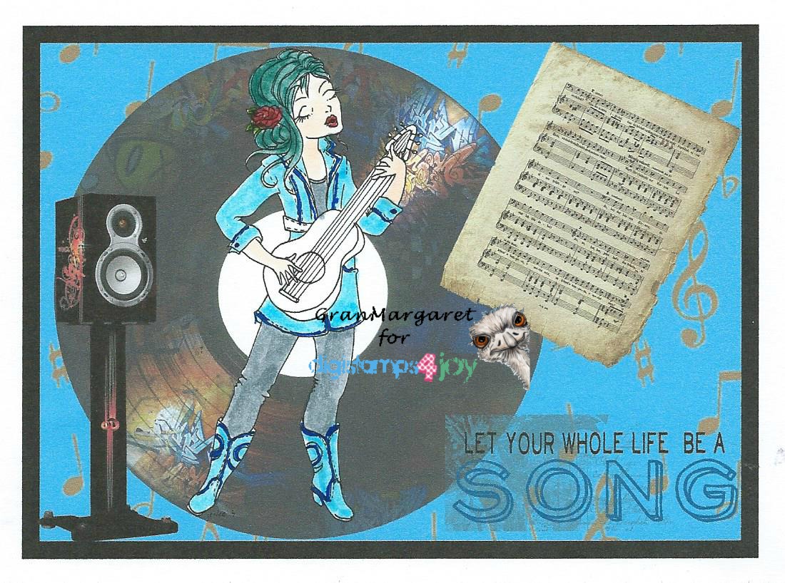 I have used papers from Gecko Galz Pixie Dust paper set and Words and music paper set. Precoloured image from Gecko Galz Beautiful Music 2 collage sheet. Sentiment and extra music from Create with TLC.